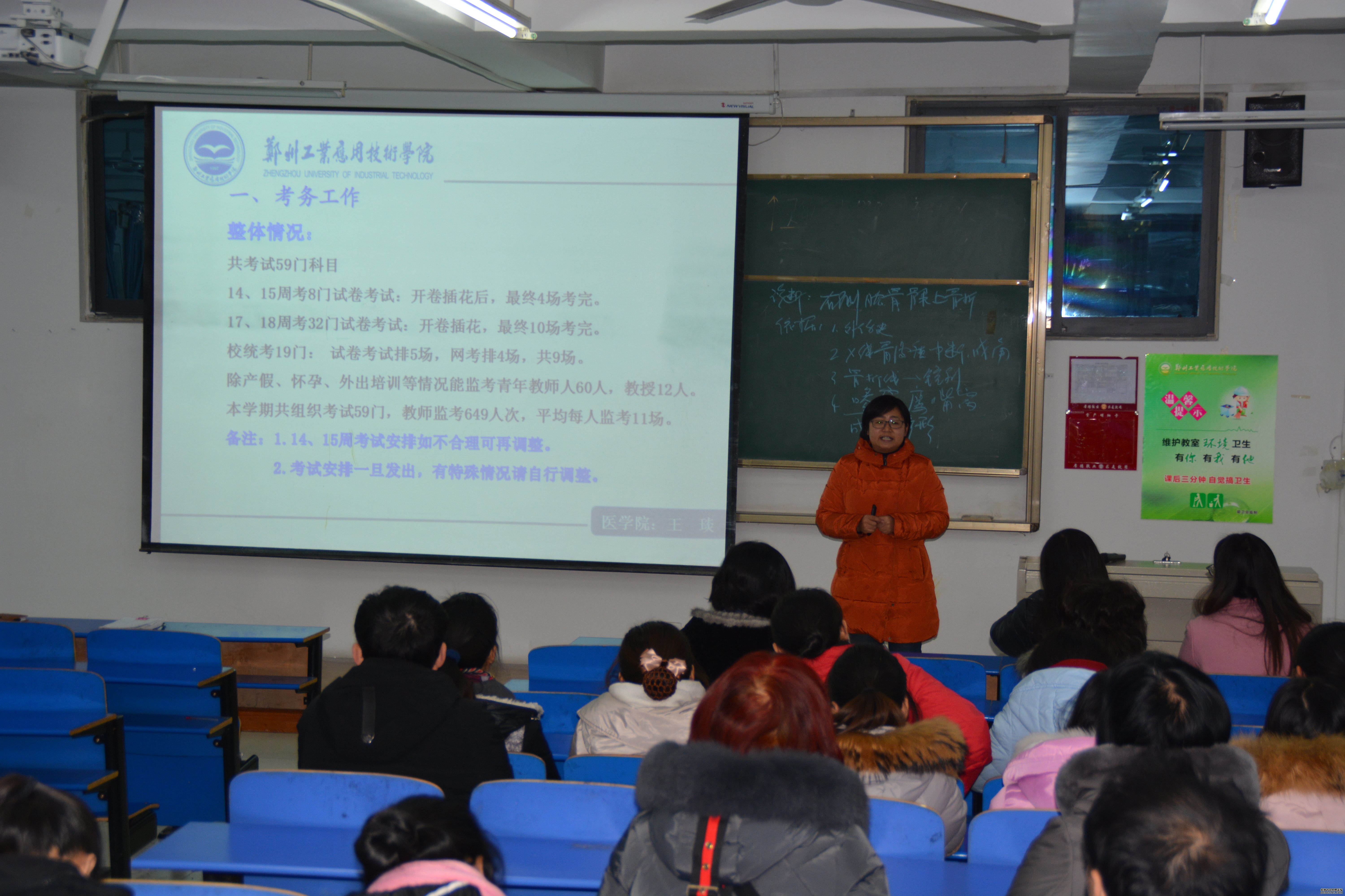 会上,王琰副经理讲解了本学期期末考试的整体情况,着重说明了考试期间各种规章制度以及对监考老师的相关要求,并明确指出以往工作的不足之处,同时指出具体处理办法。