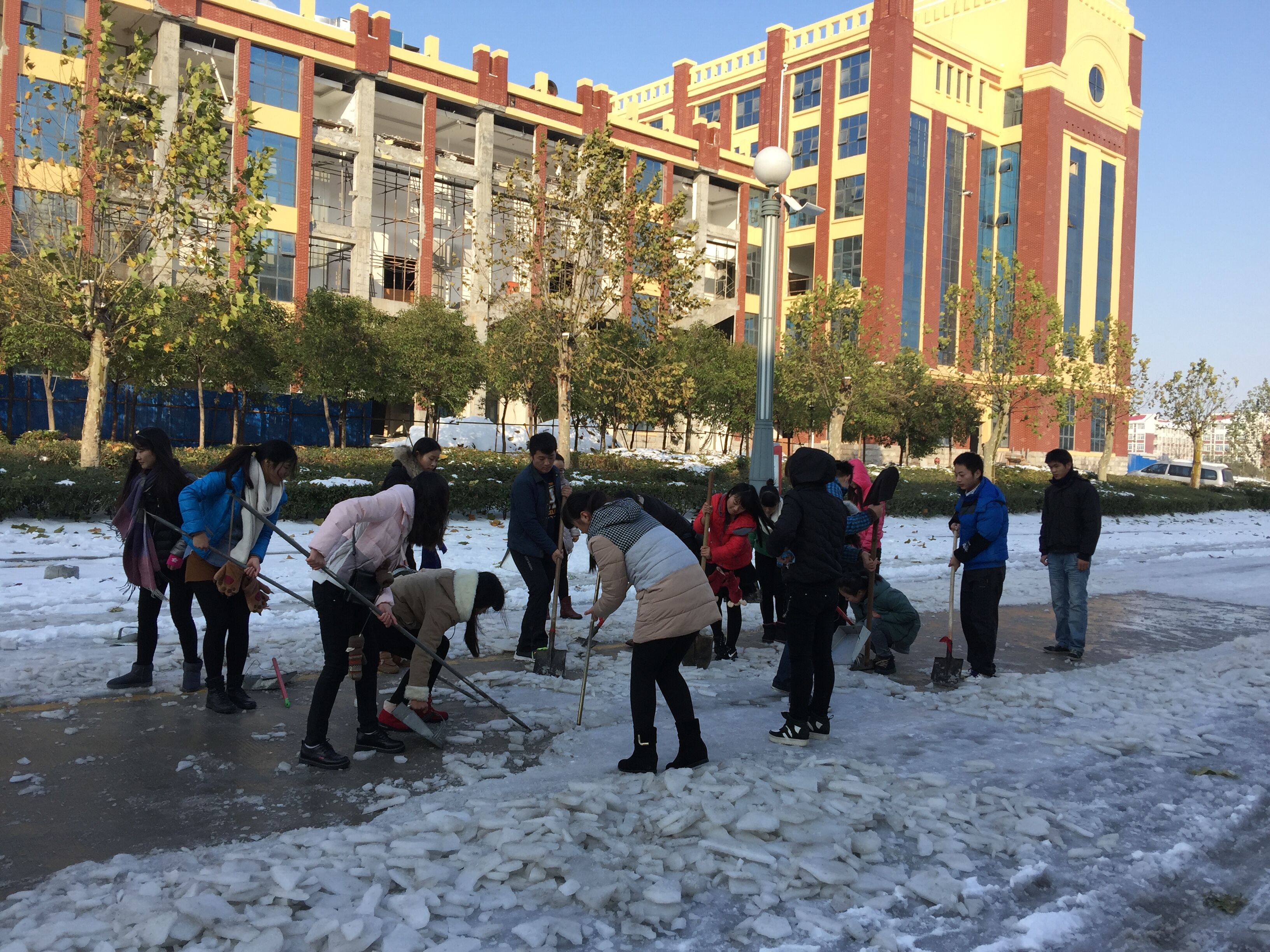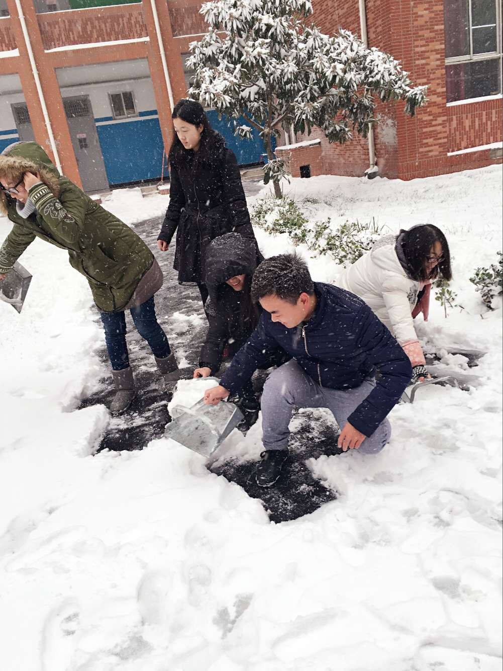 为确保师生出行安全,在公司党总支的倡议下,公司党员师生纷纷拿起铁锹、扫把等扫雪工具,在校园的道路上扫雪除滑,全力做好除雪工作。由于条件的限制,加上凛冽的北风和零下的低温,使除雪工作更加艰难,老师和同学们的手和脸都冻得通红,然而,这一切丝毫没有影响他们的热情和工作效率。在公司党总支的领导下,公司党员师生充分发扬了吃苦耐劳、顽强拼搏的学雷锋精神,体现了党员的先进性和模范带头作用。大家团结协作,顶着寒风,将分担区的积雪清扫干净,为同学们树立了榜样,得到了过往师生的高度赞扬。
