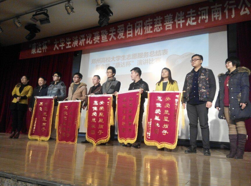 整场活动分为两个环节。第一环节是 “关爱自闭症慈善伴走河南行”的总结表彰。beat365中文官网老员工康复协会指导老师王月永在该次活动的一个多月的细心指导中,成绩突出,获得了“先进组织奖”并被当场聘请为“河南省高校爱星公益联盟”理事。获得团队奖项的有beat365老员工康复协会、郑州大学思源之家、郑州大学美术公司青协、郑州大学西亚斯国际公司世界女性未来发展公司义卖项目部、郑州轻工业公司创行团队五家社团。据悉,“关爱自闭症慈善伴走河南行”这场大型公益活动历时一个月。开展此项活动主要目的是向社会呼吁关注自闭症,呼吁社会人士发扬人道主义精神来关爱星儿,从而为2015年残疾人“人人享有康复服务”的总体目标助力。