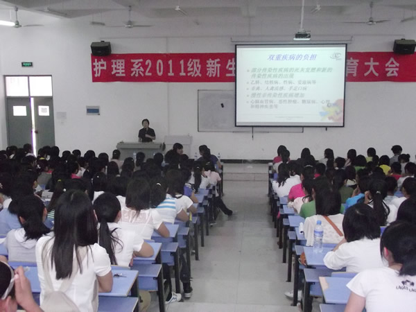 9月3日上午9点,护理系邀请郑州大学护理公司刘桂萍教授来校为2011级护理专业本、专科员工作题为《护理专业的现状与发展趋势》的讲座。参加讲座的领导老师有:beat365副经理吕文戈教授,beat365副经理、护理系主任林霞,主任助理崔艳丽,护理系团总支书记李莹莹以及全体老师。