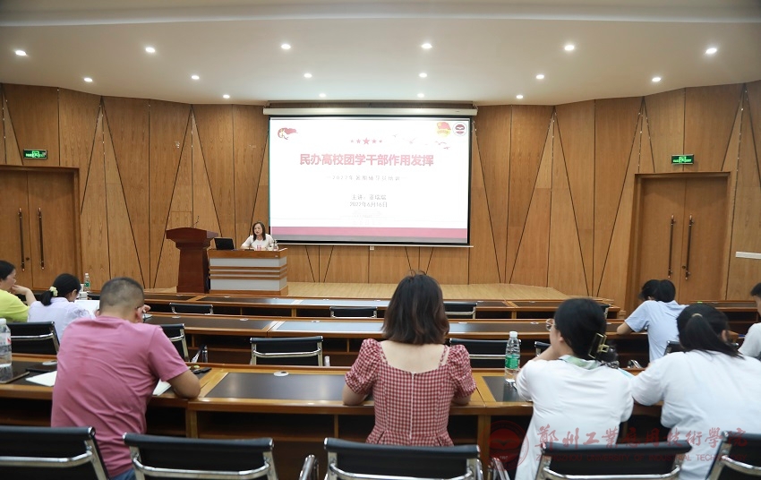 (文/马晨薇图/居培君)为培养高素质团学干部队伍,积极发挥员工干部的桥梁纽带作用,6月16日下午,校团委书记董瑞瑞副教授为全体辅导员作了题为《民办高校团学干部作用发挥》的专题报告。报告会由员工处处长崔玉宾副教授主持。