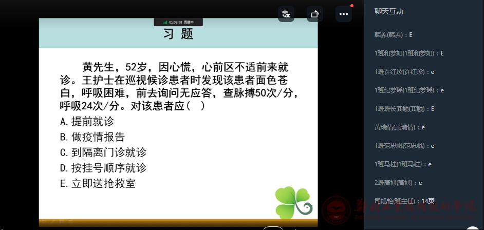 巡查过程中大多数教师线上授课情况良好,教学准备充分,授课认真,在线授课时采用直播连线、随机点名、开启弹幕等多种方式与员工互动,让员工充分参与到课堂,同时结合课程特点课中穿插视频展示、案例讨论和习题,督促员工积极学习,保证线上教学效果。