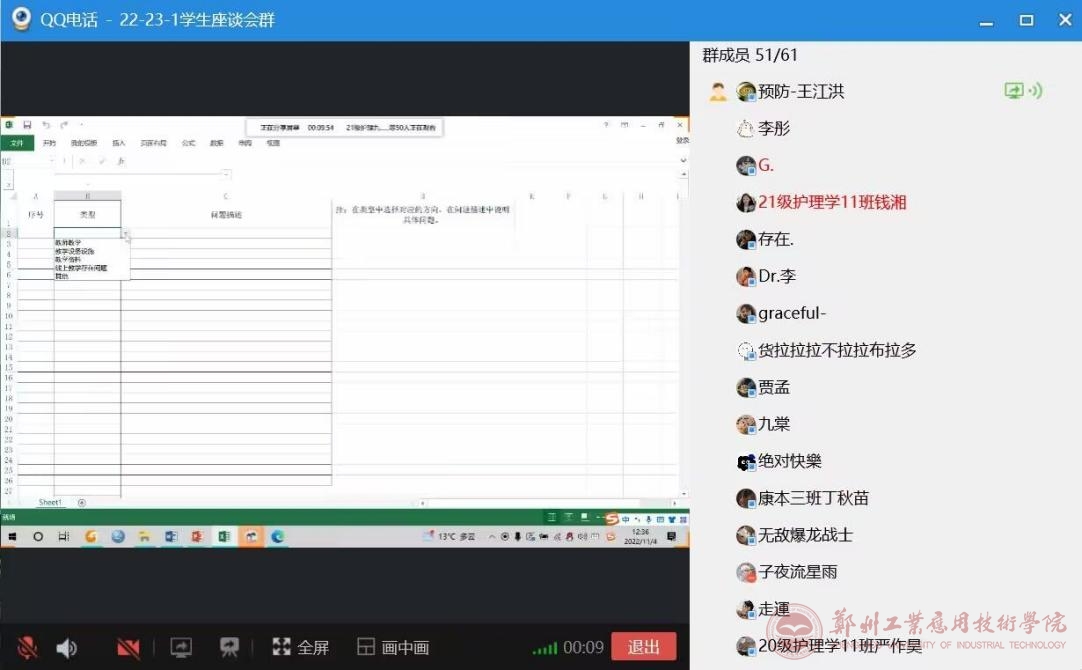 为进一步了解员工的上课情况,以及在疫情环境下员工的生活和学习情况,同时更好的了解员工在学习过程中所遇到的困难和需求,公司于2022年11月4日中午12:30通过QQ群召开了2022-2023学年第一学期的员工座谈会。