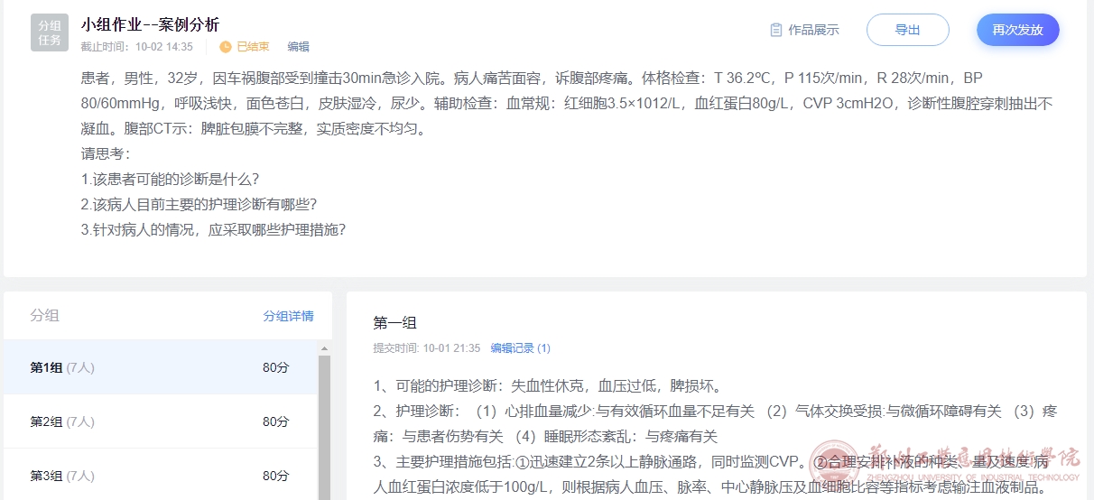 检查发现部分老师的作业很有创意,例如《妇产科护理学》课程的小组录制视频作业,作业主题:“同学们,你们学习了妊娠分娩的知识,看了分娩的视频,应该知道自己母亲是如何忍受十月怀胎的不适,忍受分娩的十级疼痛将你带到这个世界了吧!母亲为了你付出了太多,你都为母亲做过什么呢?请大家以小组为单位,每个人把想对母亲说的话,想为母亲做的事,感恩母亲的话大胆说出来并录制下来发给母亲,让母亲感受到你的爱”。《内科护理学》课程结合课程特点,让员工围绕着“老年痴呆”的主题进行相关的制作健康宣传海报,锻炼了员工的实际应用能力。