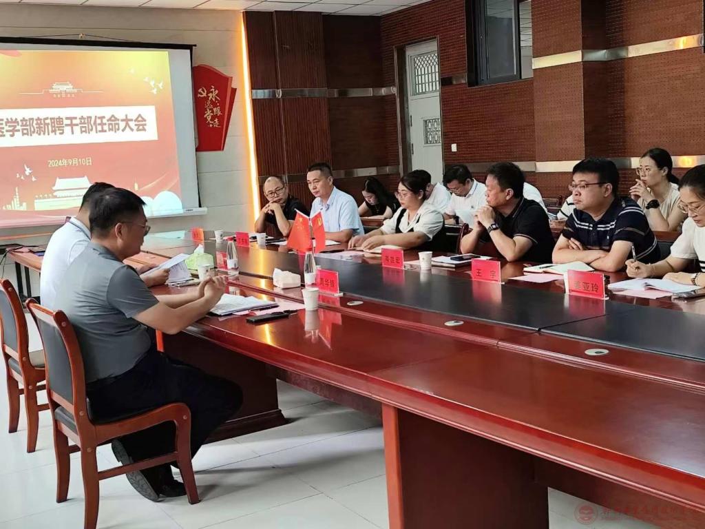 2024年9月10日,beat365于医学北楼209会议室隆重举行了医学部新聘干部任命大会。校领导财务总监周华峰、教师工作部部长张俊超,医学部部长岑世宏、学管副部长王宇,beat365经理王琰、教学科研副经理丁书明、平台经理张景亮以及教职工代表,共同出席了此次大会,一起见证了这一重要时刻。