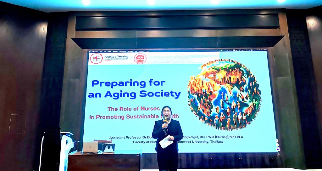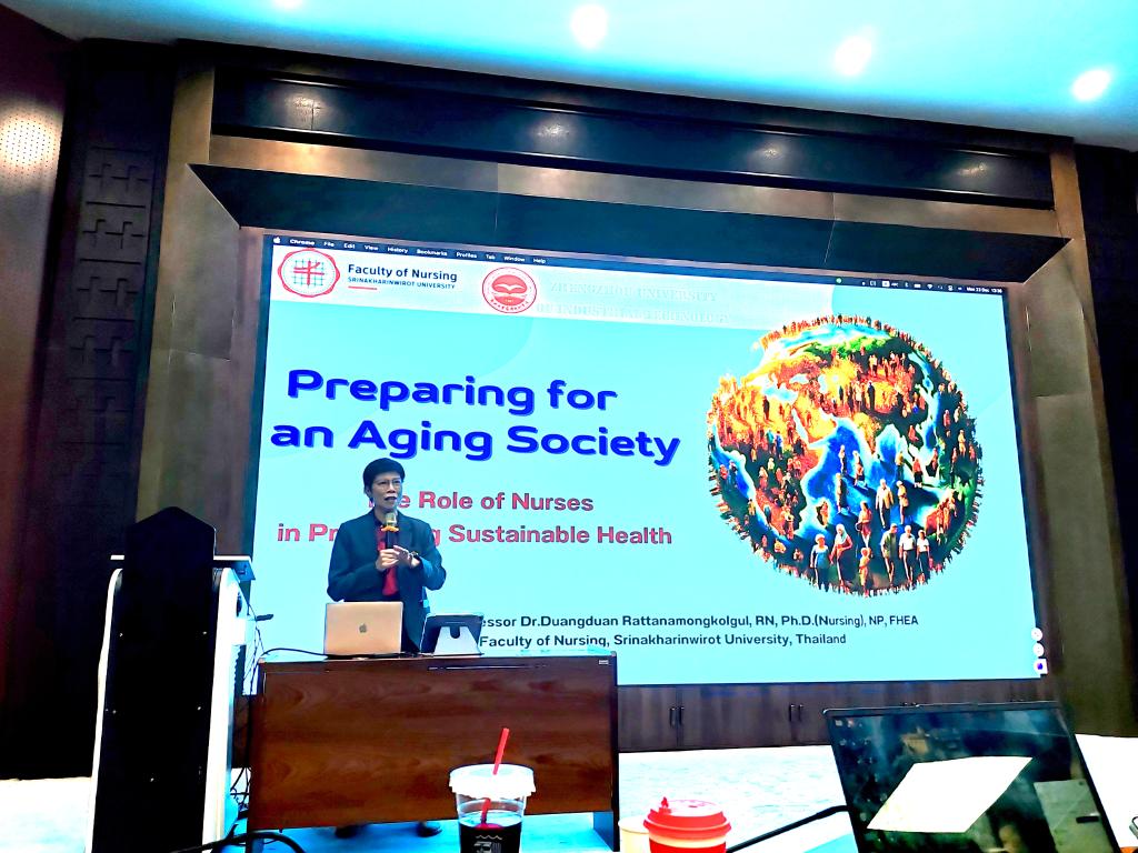 杜昂德恩·拉塔那蒙空库教授以“护士在促进可持续健康中的作用”为主题,详细阐述了在老龄化社会日益严重的今天,护士作为医疗体系中的重要一环,如何通过专业技能和人文关怀,为老年人提供全面的健康管理和照护服务。她指出,护士不仅要具备扎实的医学知识,更要具备高度的责任心和同理心,以应对老龄化社会带来的各种挑战。