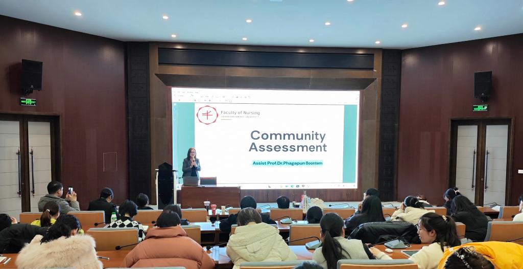 帕贾潘·波登教授则带来了“社区评估”的专题讲座,他强调了社区评估在老龄化社会健康服务中的重要性。通过详细的案例分析和数据展示,他向听众展示了如何进行有效的社区评估,以了解老年人的健康状况、生活需求以及潜在的健康风险,从而为制定针对性的健康服务计划提供科学依据。