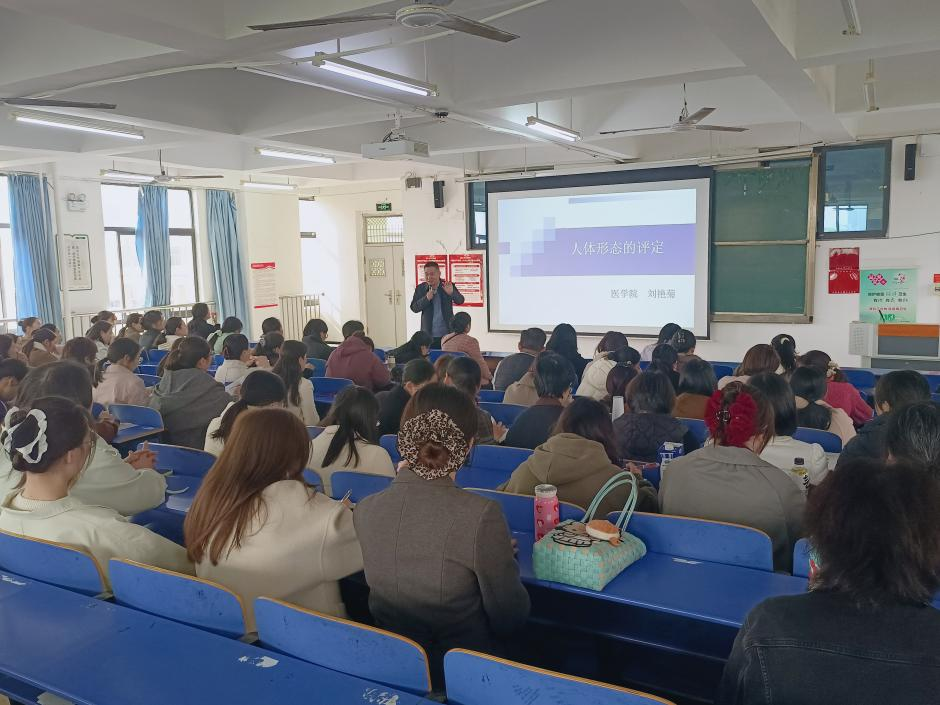 随后,康复治疗学教研室刘艳菊老师以“人体形态的评定”为主题开展教学示范。她遵循BOPPPS教学模式,将教学内容划分为四个逻辑清晰的模块,逐步推进教学进程。课程从“姿势的评估”切入,结合实例与视频讲解异常姿势的识别要点;接着围绕“长度测量”与“围度测量”进行实操示范,强调数据准确性对评定结果的重要影响;最后通过典型病例,引导教师将理论知识融入临床实践,深入理解评定结果在疾病诊断与康复治疗中的关键作用。