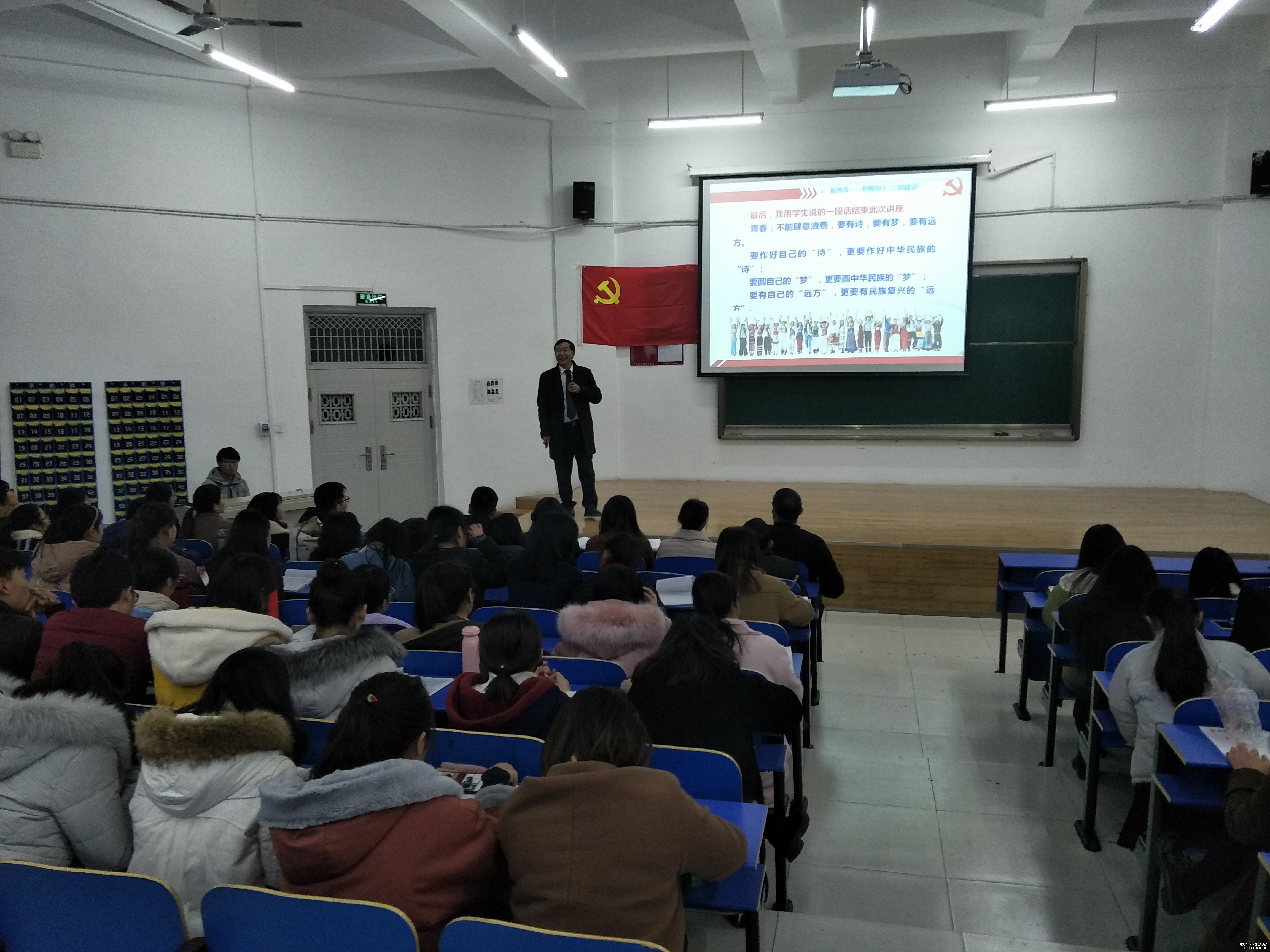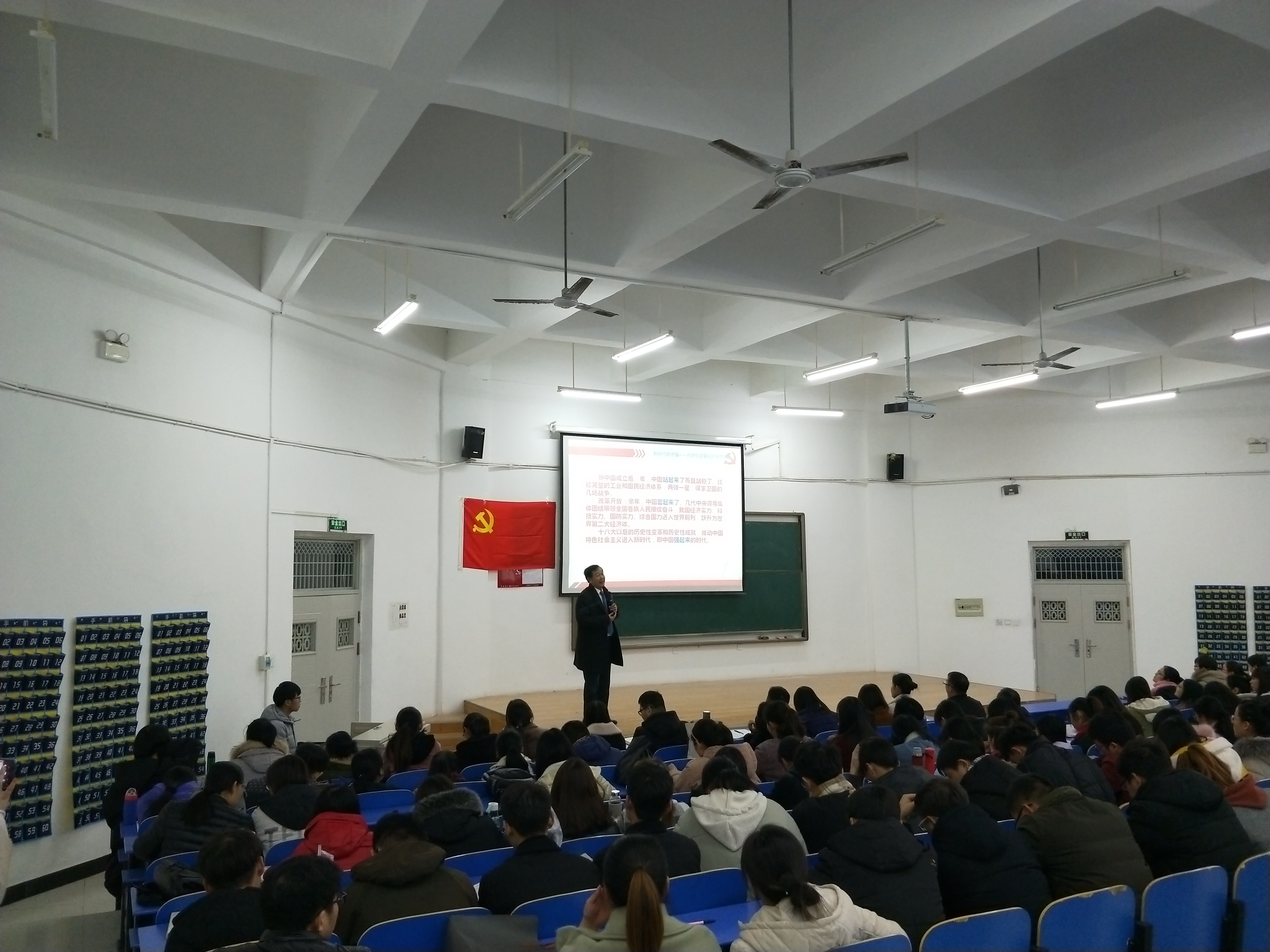 会议伊始,徐教授从“新时代”“新思想”“新征程”“新青年”四个方面深入解读了党的十九大精神。报告内容全面系统、准确深刻,突出重点,通俗易懂。徐教授在报告中寄语广大师生要认真学习领会党的十九大精神,并发挥精神变物质的巨大威力,共同为实现中华民族的伟大复兴而努力。