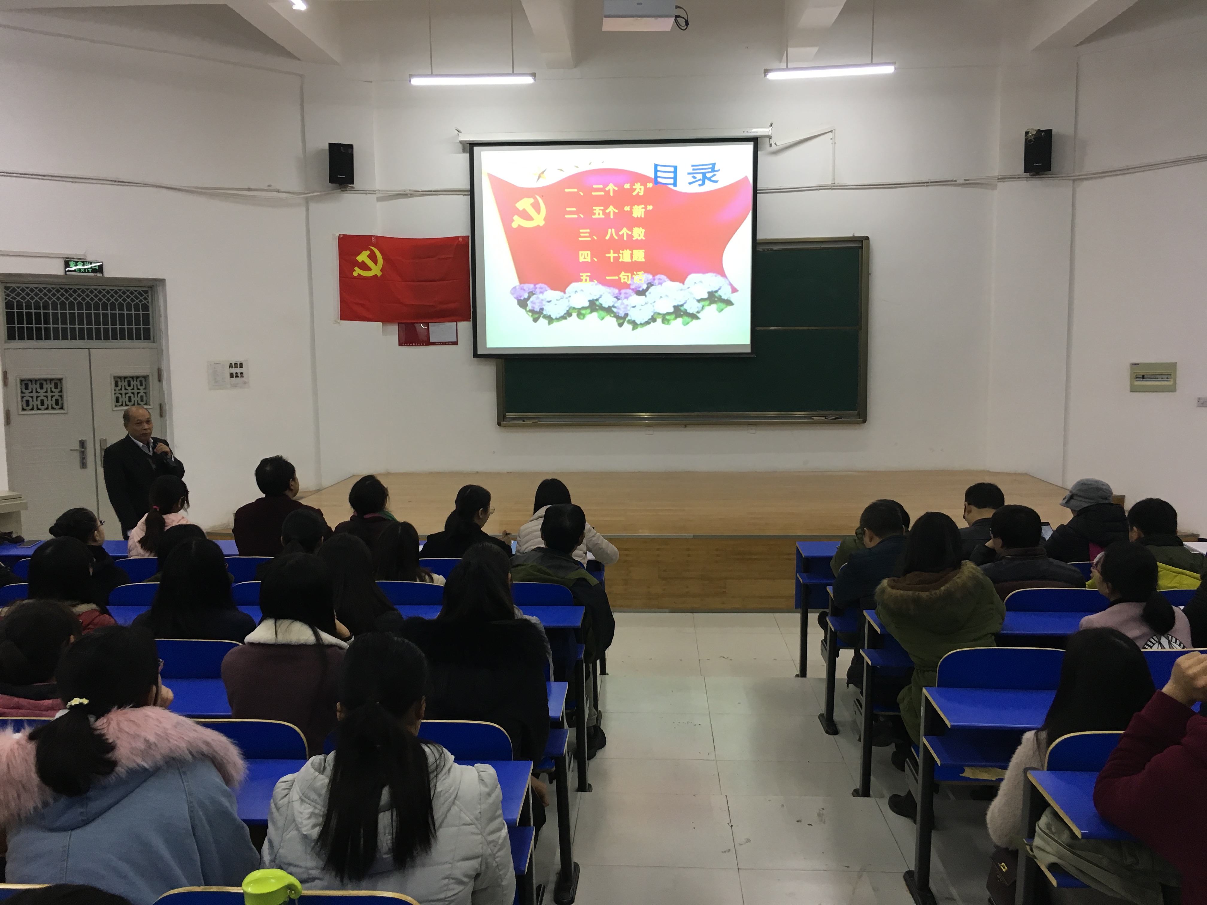 在这次党课中,张教授的重要讲话,使在场的所有人受益匪浅。本次大会不仅学习了党的十九大精神,最重要的是能够听得懂、能贯彻、可落实。通过张教授生动活泼的演讲,让党的十九大精神深入每一个人的心中。