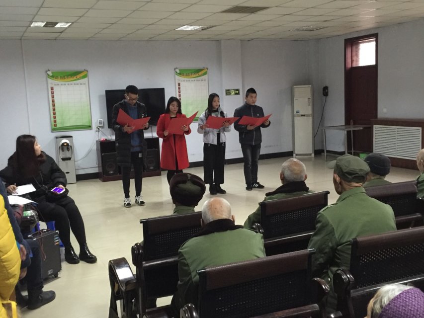 2015年12月27日上午,beat365“学雷锋”志愿者到新郑市福利中心举办“庆元旦,献爱心,关爱老人”文艺活动。