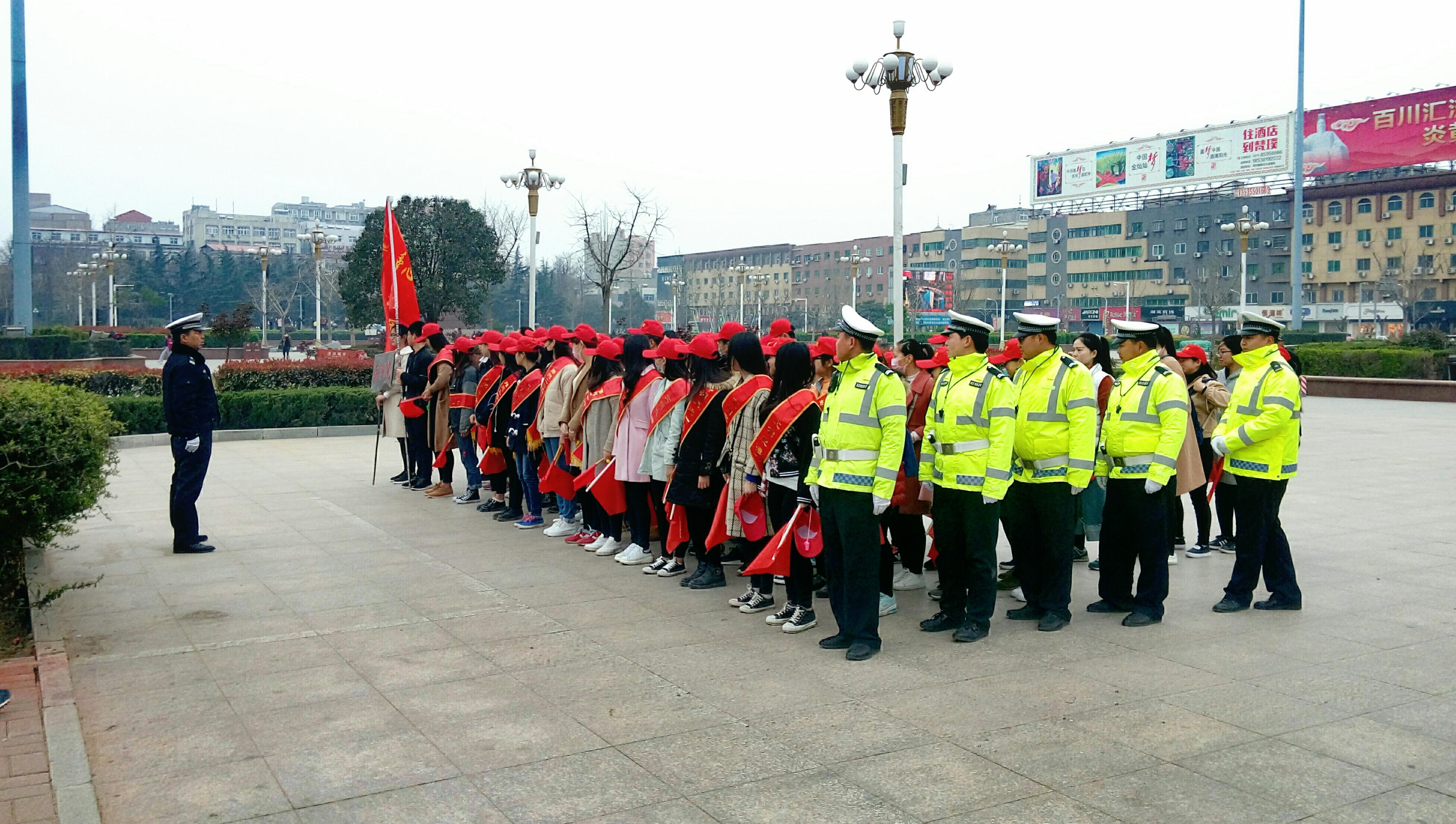 18日早晨,由公司组织的150名协交志愿者,在明德楼前集合,整装待发。8点正在炎黄广场集合,由新郑市交巡警大队统一安排部署,员工分散至人民路各个路口进行站岗,协助交警指挥交通。