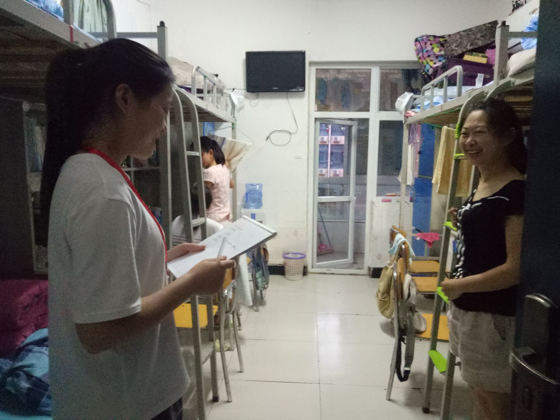 本次宿舍检查活动由第四党小组全体党员同志参加,她们亲切询问员工假期的生活情况,及时登记未返校员工的名单并询问其未到的缘由,确保每一位同学平安返校。随后公司党员工作站成员与返校同学亲切交谈假期生活,提醒各位同学调整睡眠生物钟,以饱满的精神状态迎接接下来的学习,为期末考试做好准备。