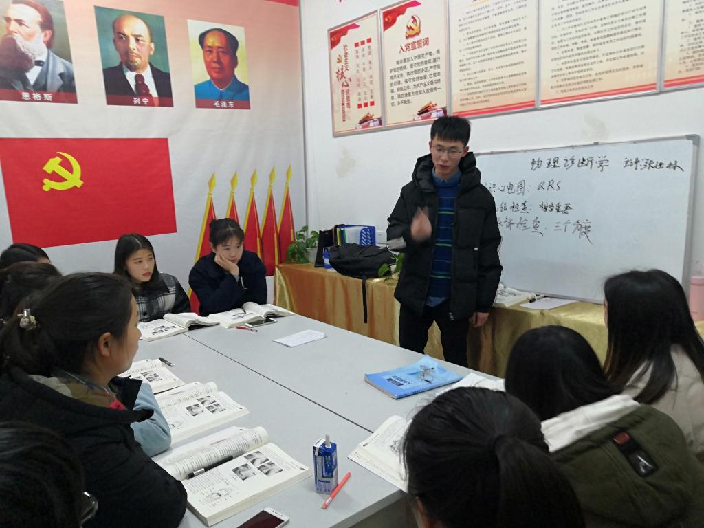 12月23日晚,第七党员工作站“学霸辅导班”第六讲开讲。此次由16级康复治疗学5班的张世林同学主讲《物理诊断学》。