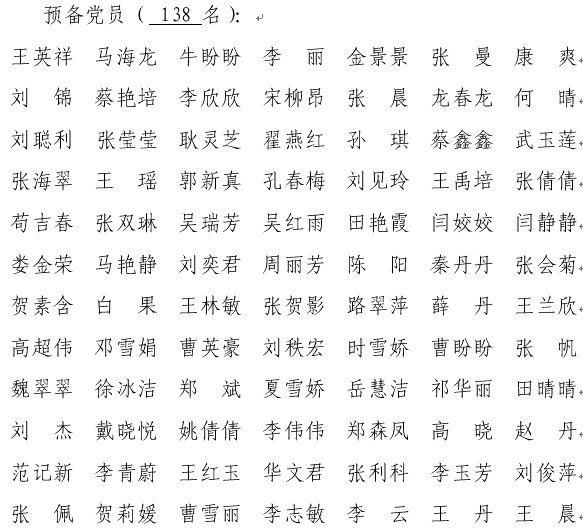 第十四期发展新党员名单