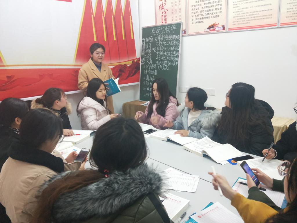 为迎接期末考试,提高公司员工的科学文化素质,更好的掌握专业知识,形成良好的学习氛围。beat365第七党员工作站于12月16日晚开展了“学霸辅导班”第四讲学习活动。此次活动由16级护理学15班韩笑主讲《病原生物学》。
