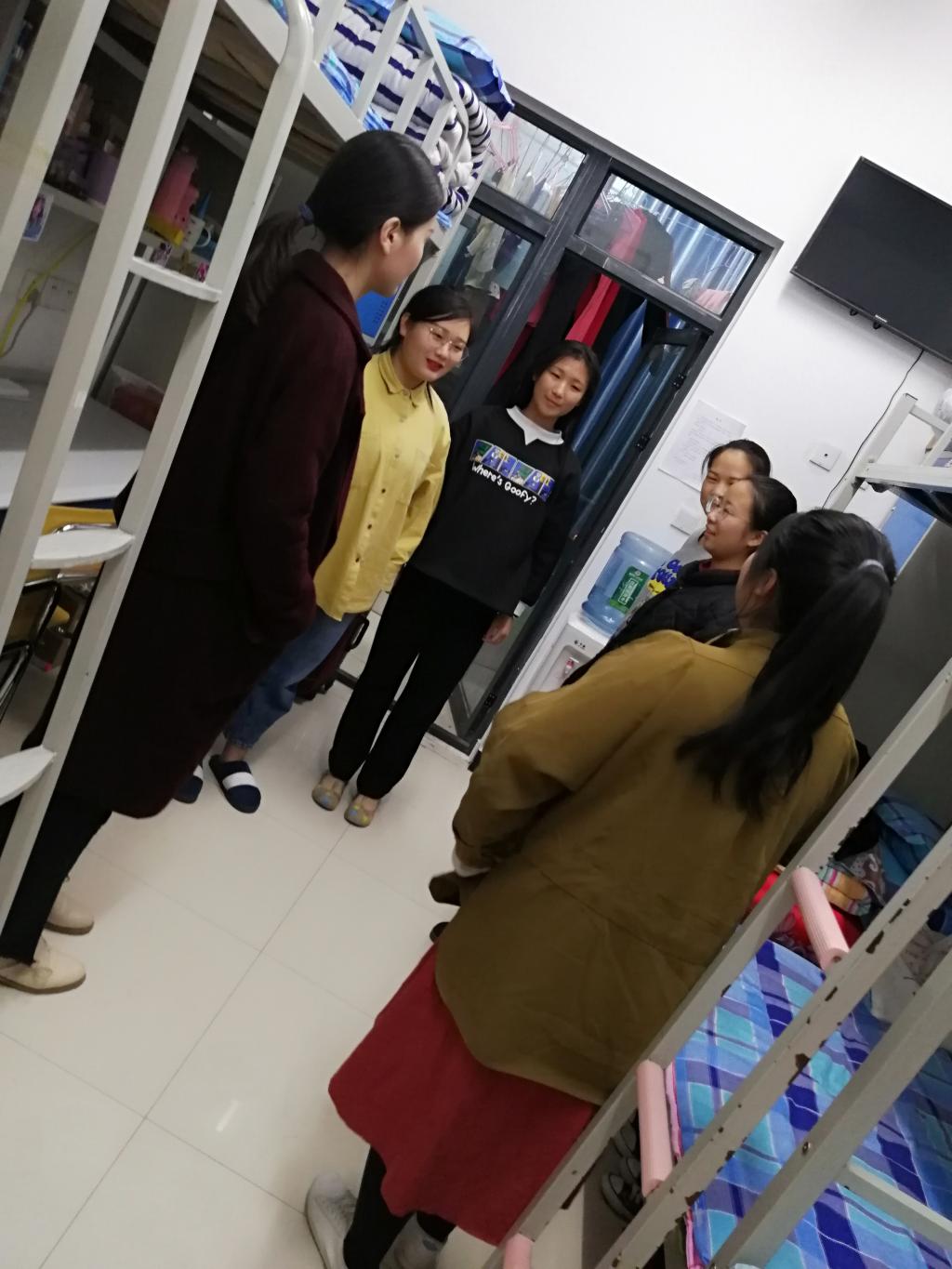 为了解大一新生入党积极分子的宿舍安全、卫生及生活情况,构建文明宿舍,传承宿舍文化精神。11月21日晚九点,第七党员工作站组织员工党员对H2宿舍楼新生入党积极分子宿舍进行了宿舍走访。