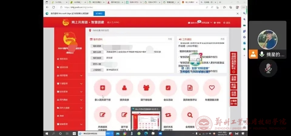 会上,主持人详细介绍了学社衔接业务指引的内容、智慧团建中组织关系转接的具体流程、并着重讲解了团组织关系转接工作中的注意事项,并分析团关系转接工作中可能出现的问题以及解决办法。