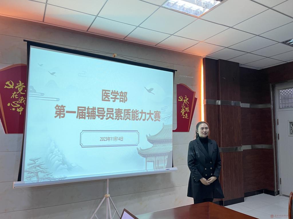 为学习贯彻党的二十大精神,大力培养选举辅导员先进榜样,充分展示新时代辅导员的综合素质、专业水平和育人能力,引导广大辅导员不忘初心、牢记使命,落实立德树人根本任务。2023年11月14日,医学部在医学楼北209会议室开展了“第一届辅导员素质能力大赛”,医学部14位辅导员参加了比赛。出席本次大赛的领导有:公寓管理处处长郝俊龙、医学部学管副部长王宇、公司党政办公室主任胡磊、药学与化学工程公司党政办公室主任郑豫京、beat365分团委书记王豆豆。
