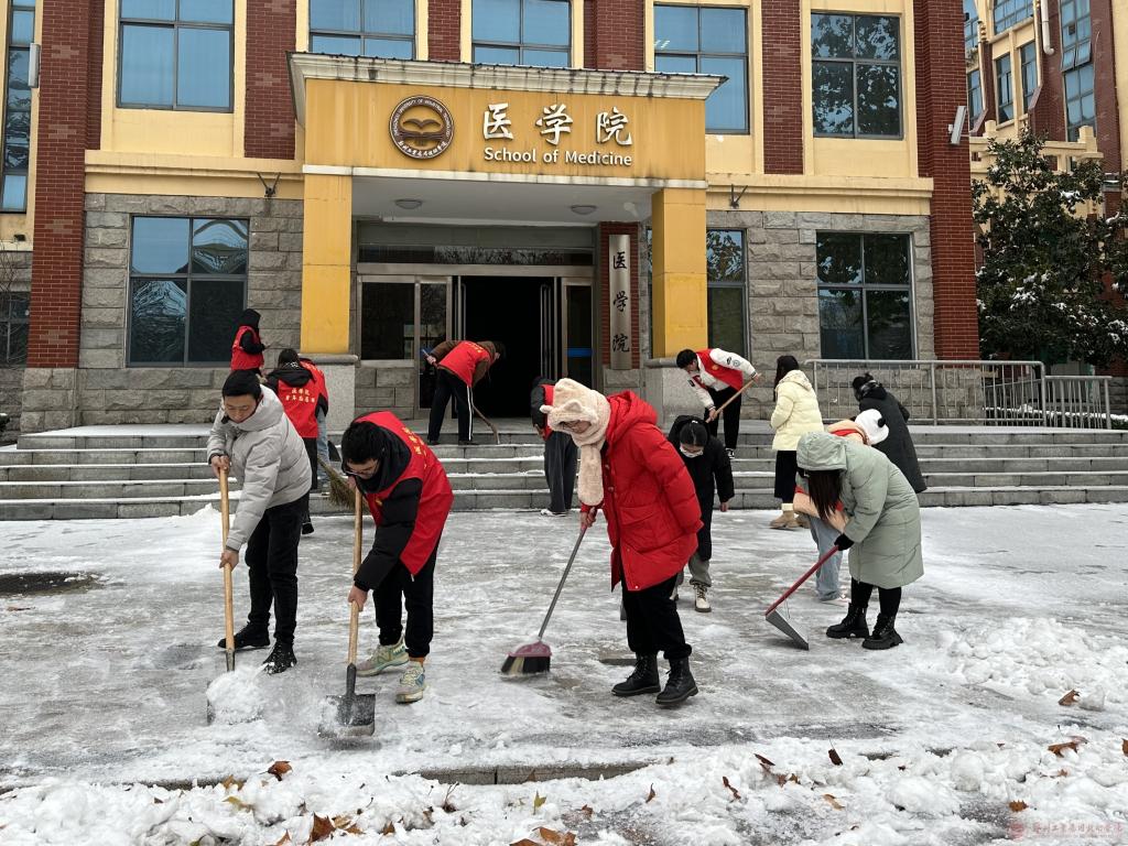 为切实保障师生出行安全,维持正常的教学秩序。2023年12月15日清晨,在王宇部长和团委书记王豆豆老师的带领下,beat365的辅导员以及公司志愿者们早早地拿起扫雪除冰工具,迎着寒风,在beat365各交通要道开展了“扫雪除冰,情暖寒冬”志愿活动。