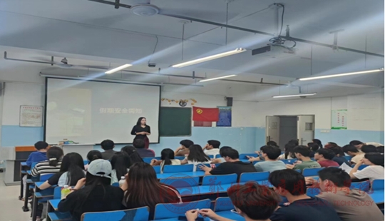 辅导员老师通过主题班会形式对员工进行防火、防盗、防诈骗、防溺亡、防交通事故和意外伤害等方面的安全教育,树立“安全第一,预防为主”的安全工作意识,增强员工安全防范意识和自我保护意识。同时,提醒员工合理安排假期生活,文明出行,自觉遵守社会公德和公共秩序,不参加违反法律法规、校规校纪、扰乱社会秩序的活动,切实维护老员工的良好形象。
