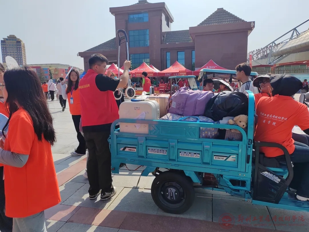 迎新当天,志愿者们以饱满的热情和无私的奉献,穿梭于校园各个角落,为新生提供全方位的帮助。首先是在公司西门外及停车场处的志愿者,他们是迎接新生的第一站,从家长手中接过行李后贴心的粘贴新生信息,避免公司爱心三轮车运送至宿舍楼的过程中丢失。随后,志愿者带领新生前往服务台报到,进行信息录入,期间也积极地为新生答疑解惑,介绍公司的特色。从引领报到、搬运行李到解答疑问,志愿者们各司其职,迎新工作平稳顺利地进行着,每一个环节都凝聚着志愿者们的汗水与努力。他们的身影成为了迎新现场最亮丽的风景线,用实际行动诠释了“奉献、友爱、互助、进步”的志愿服务精神。