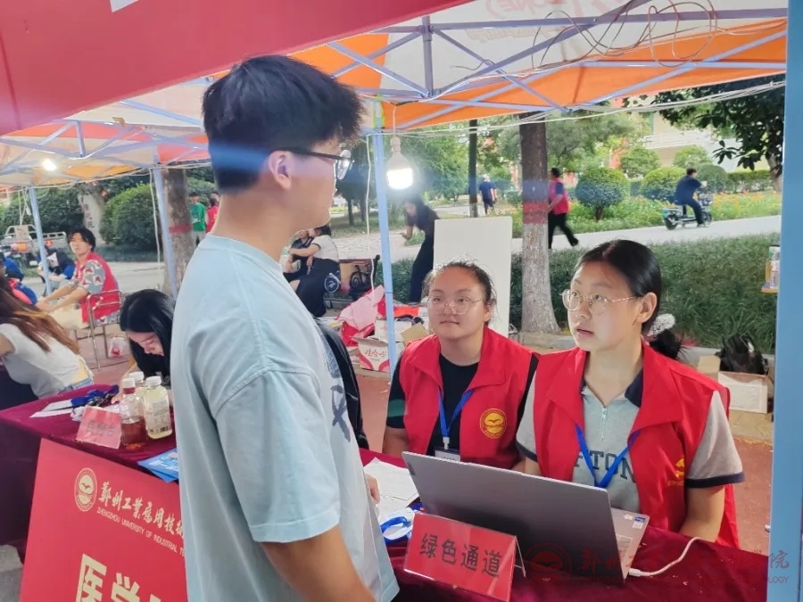 为了迎接新生的到来,朝阳初起之时,公司师生工作人员就各司其职、默契配合,准备好绿色通道点、员工注册点、党员示范岗、志愿者服务站等服务点迎接新生到来。