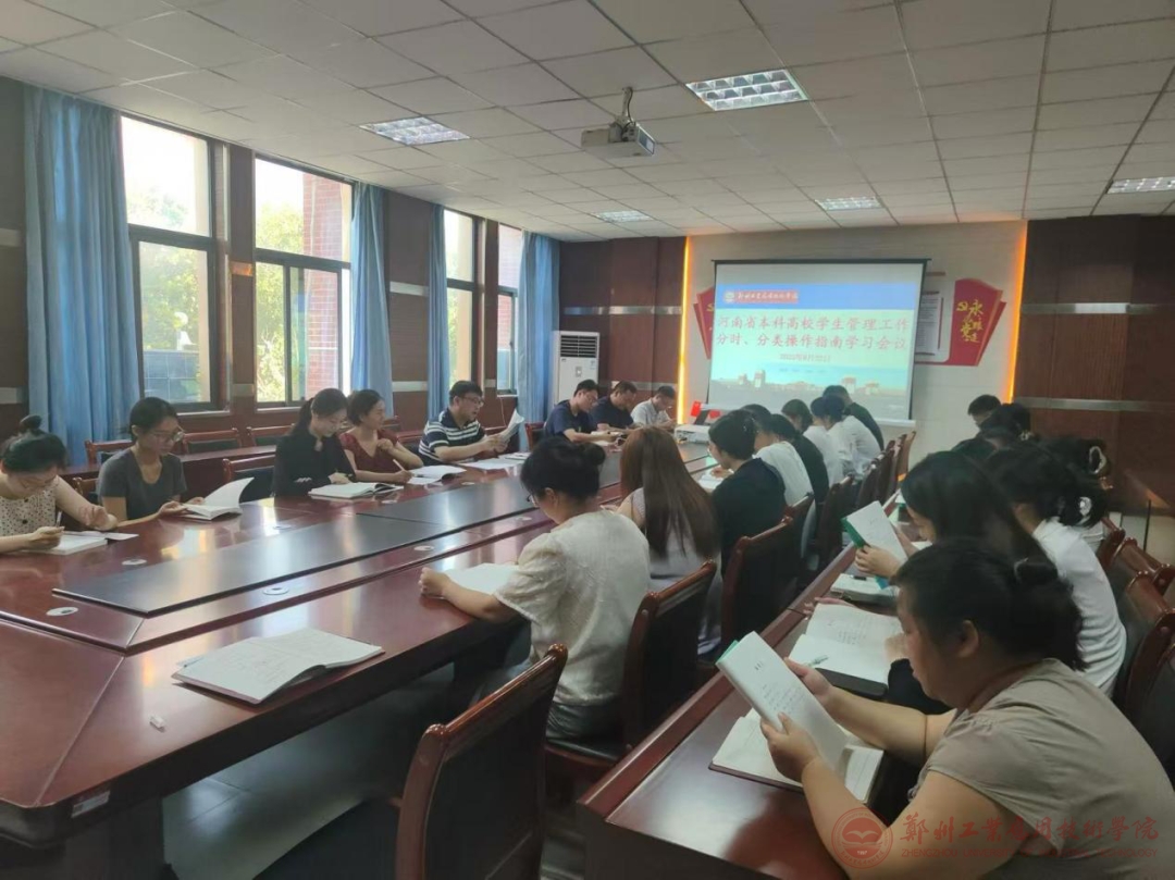 为深入贯彻落实河南省教育厅关于本科高校员工管理工作的最新要求,准确把握新时代员工工作的新特点、新规律,2025年8月22日下午,beat365于医学楼北209开展了《河南省本科高校员工管理工作分时、分类操作指南》(以下简称《指南》)专题学习会议。本次会议旨在系统学习、深刻领会《指南》的核心要义与操作规范,以期进一步提升公司员工管理工作的精细化、科学化与专业化水平。会议由公司党委书记、员工管理副经理王宇主持,分团委书记杨春红及beat365全体辅导员参加了此次学习研讨。