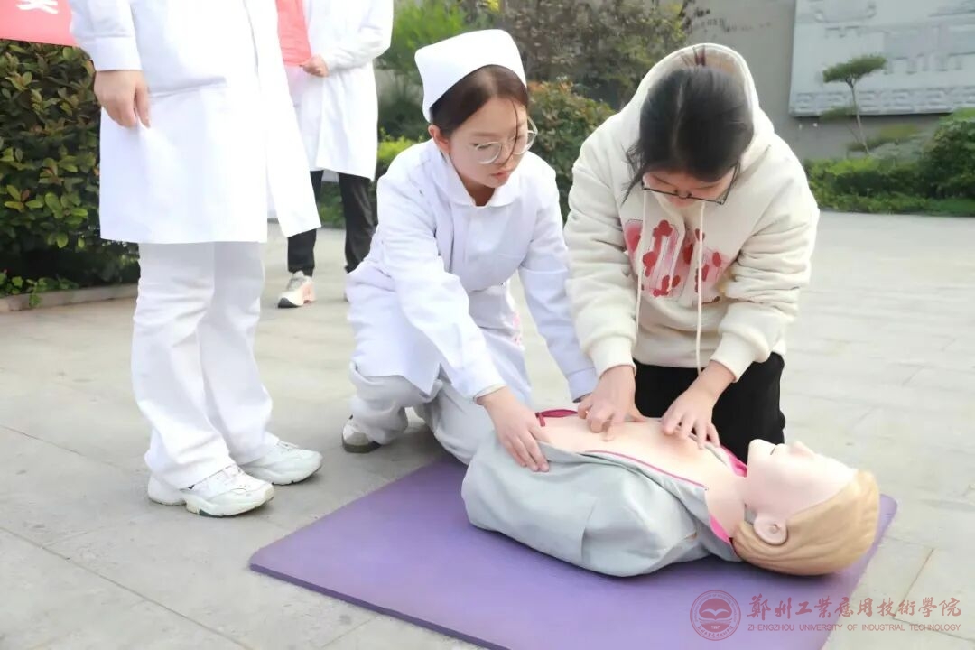 在实践环节中,师生团队紧扣“文化传承+技能实践”主线,开展了一系列内容充实、衔接有序的活动。活动伊始,郭俊红老师为文物局职工系统讲解了心肺复苏及海姆立克急救法的专业知识与操作要点,4名护理专业员工则同步进行了规范、流畅的实操演示,实现了“讲演结合”的直观教学。随后,师生团队转场至车马坑景区户外实践基地,将培训课堂延伸至公共空间,面向广大游客开展急救知识科普宣传与模拟演练。活动现场吸引了众多市民驻足观看与积极参与,在热烈的互动中,护理学子不仅巩固了专业技能,更将关爱与守护的仁爱精神传递给了社会公众,圆满达成了知行合一的教育目标。