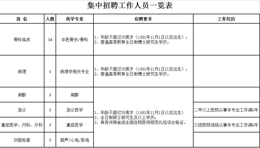 详见《河南省洛阳正骨医院(河南省骨科医院)集中招聘工作人员信息一览表》(附件)。