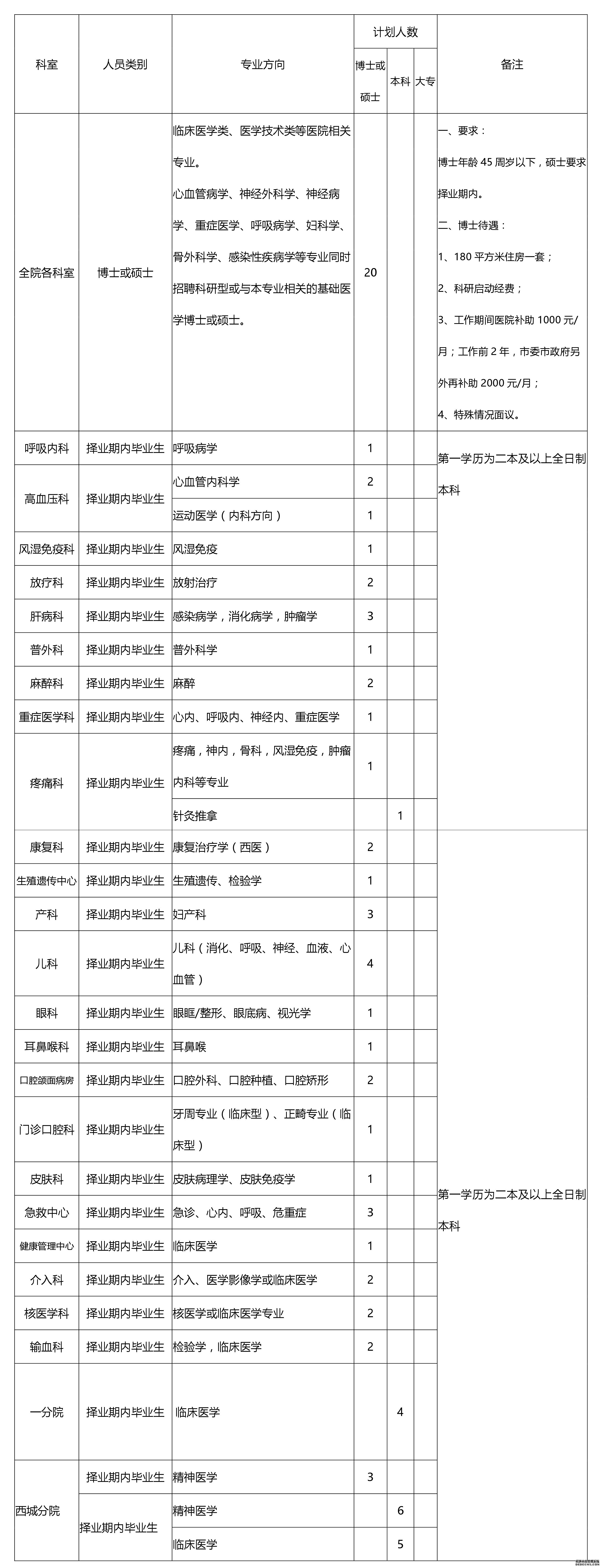 急需专业人才:全日制本科及以上学历,有相关专业临床工作经验(含住院医师规范化培训人员)。