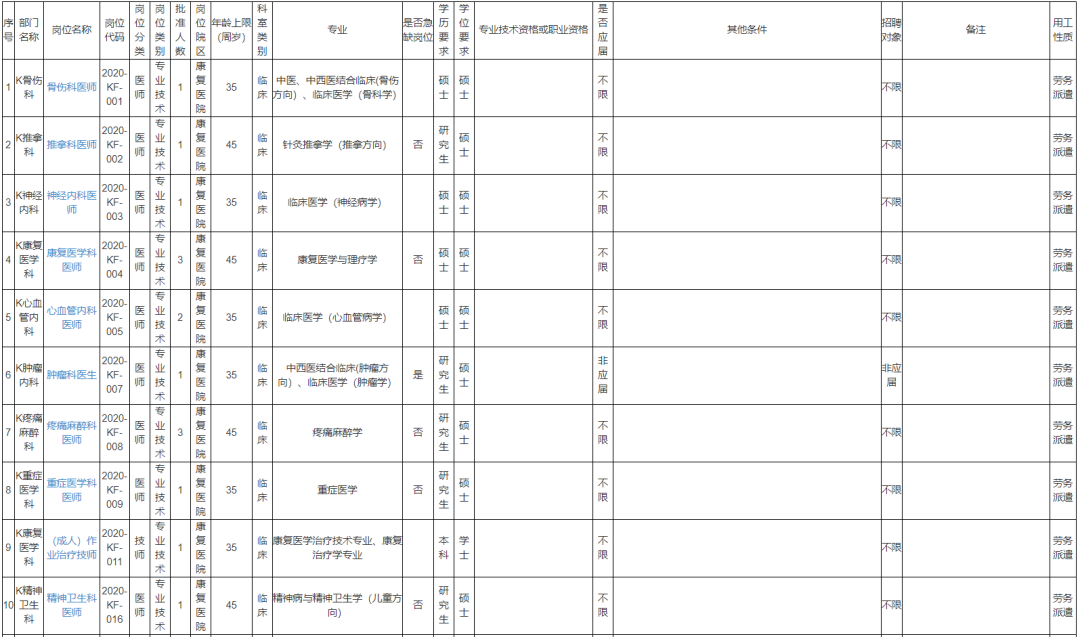 招聘岗位具体详见《浙江康复医院人员招聘岗位表》(见附件)。说明如下: