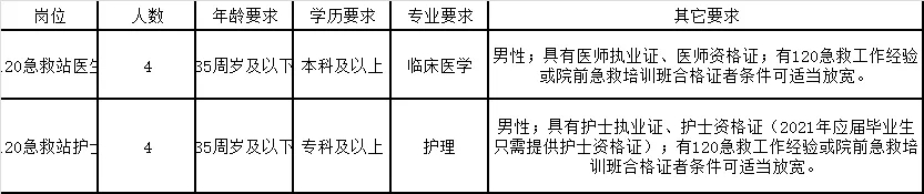 二、招聘岗位山西省中医院120急救站合同制人员8名,招聘岗位所需的具体条件以《山西省中医院2021年公开招聘120急救站合同制人员岗位表》(以下简称《岗位表》)的要求为准(见附件1)。