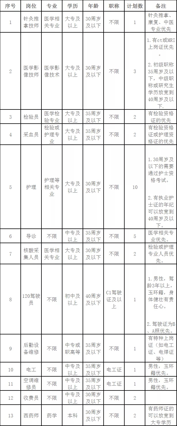 二、具体岗位、人数及要求