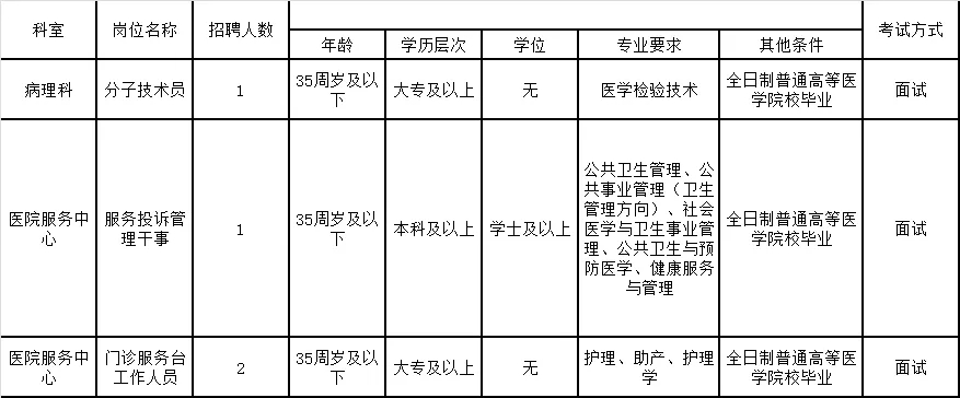 因医院工作需要,拟向社会公开招聘编外专技人员4名,招聘条件等通知如下: