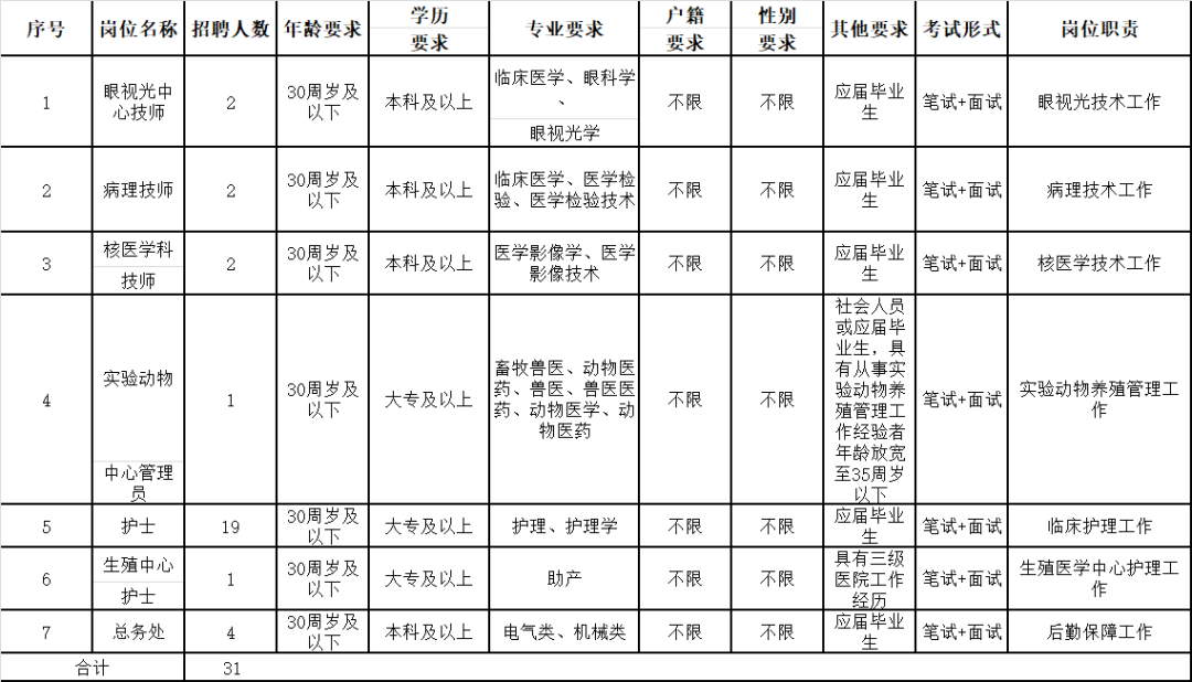 本次计划招聘31名编外人员,具体岗位详见《2023年衢州市人民医院公开招聘第一批编外人员计划表》(附件1)。