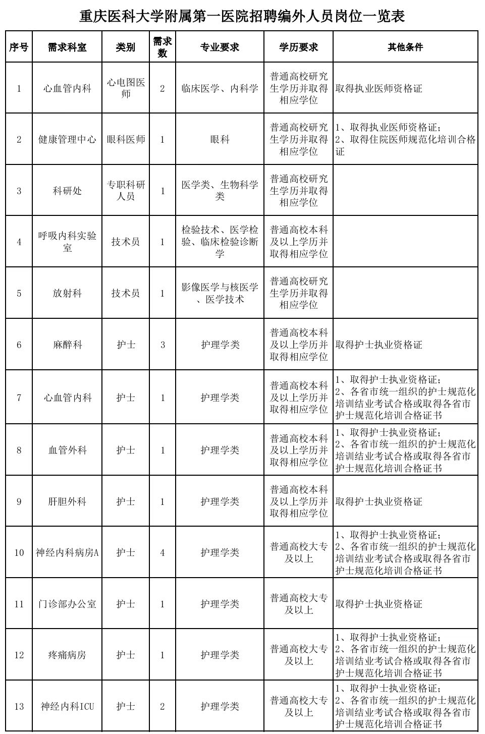 二、报名方式及时限请有意应聘者,登录网址进行在线报名https://serve.hospital-cqmu.com:7443请务必上传岗位条件所需的资质材料(毕业证、执业资格证等)。报名时限:自发布之日起一周内有效。请确保填写的个人信息真实,若发现有不实之处,立即取消应聘资格。公司根据报名实际情况,决定后续考核方式。