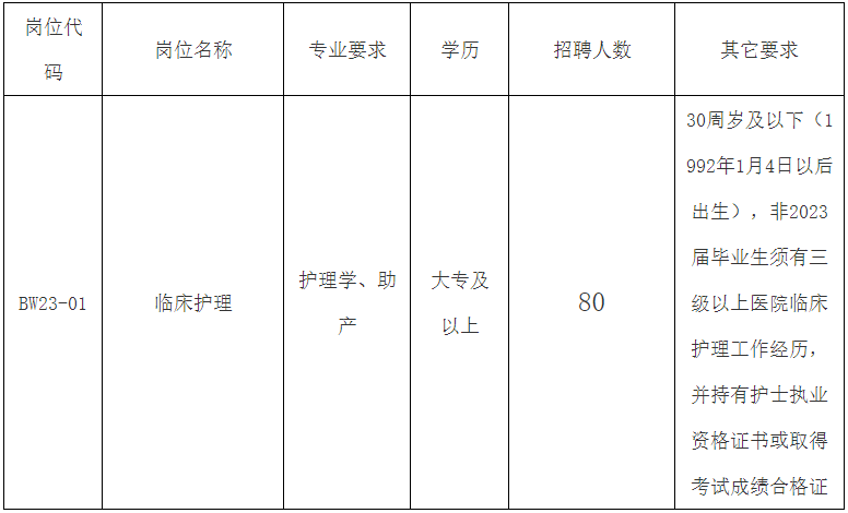 因工作需要,公司于山院区及旗山院区拟招聘编外合同制护理工作人员80名,具体招聘方案如下:
