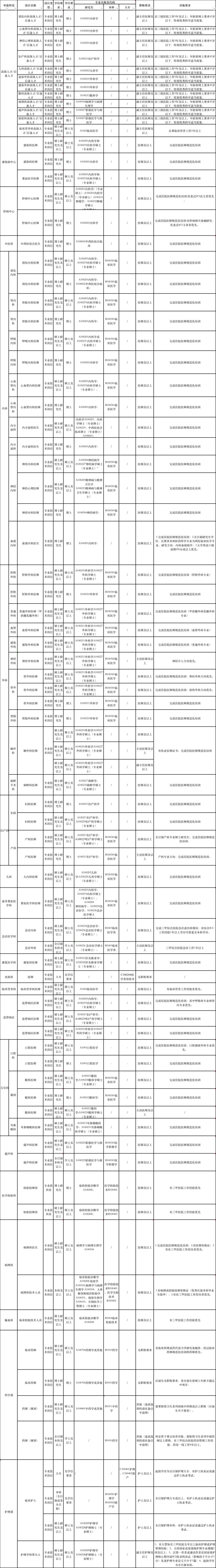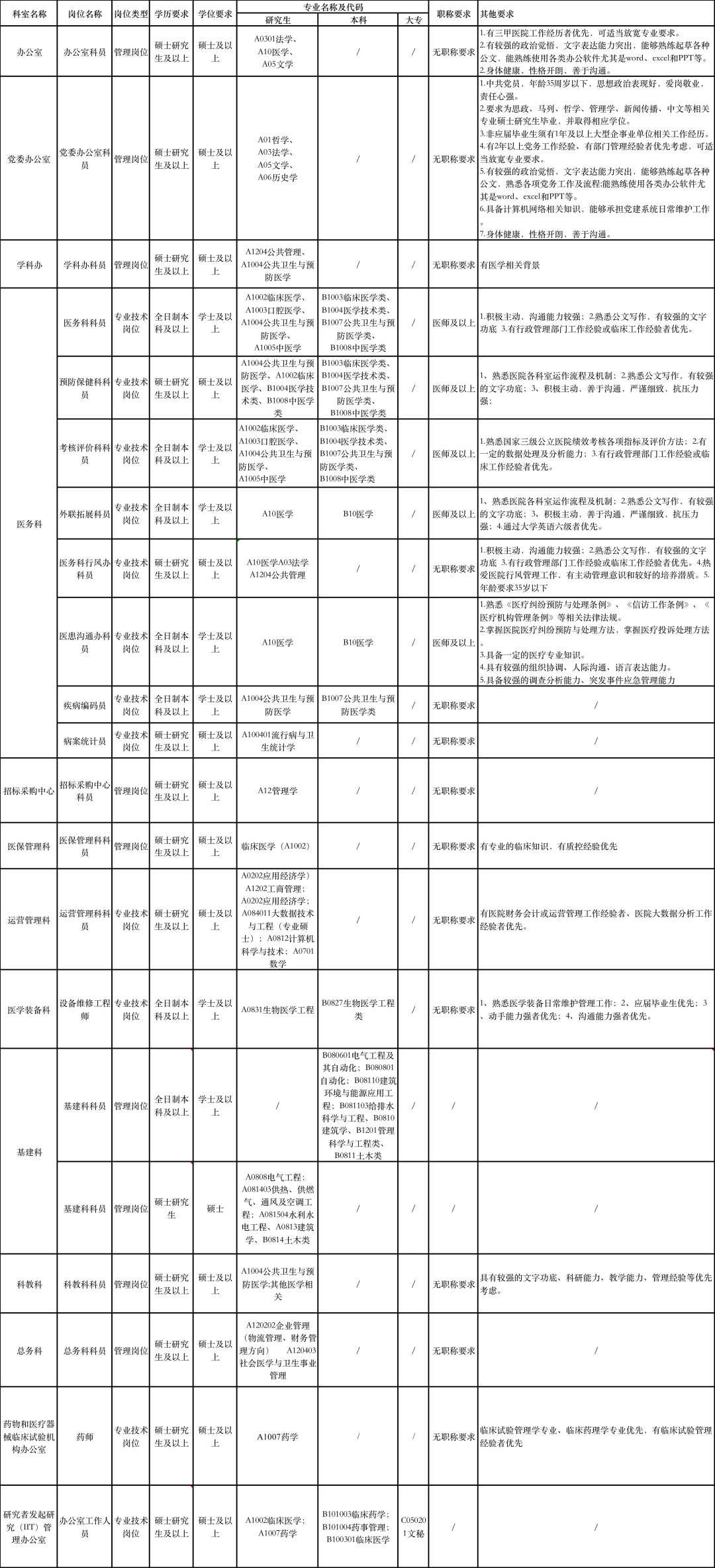 1.专职科研人员2.医疗、医技、药剂人员3.护理人员4.行政管理人员招聘具体岗位及相关要求详见附件《广州医科大学附属市八医院2023年招聘岗位表》。经住院医师规范化培训合格的本科学历临床医师,按临床医学、口腔医学、中医专业学位硕士研究生同等对待。