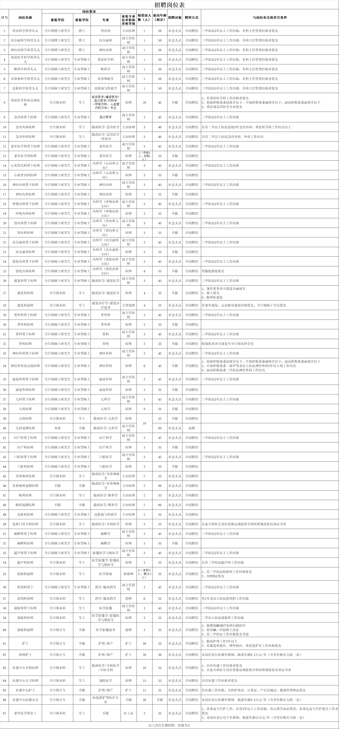为进一步满足医院临床工作需要,根据医院用人计划,经研究,公司面向社会公开招聘合同聘用工作人员,现将有关事项公布如下: