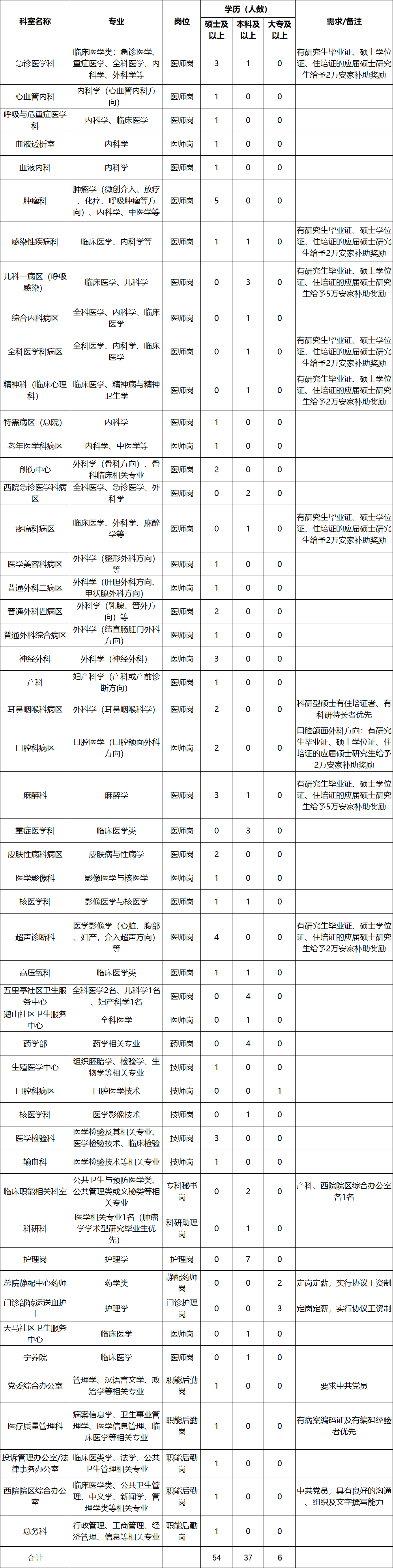 二、基本条件及要求招聘剩余岗位要求详见:公司官网2022年8月31日发布的《2023年柳州市工人医院/广西医科大学第四附属医院招聘简章》
