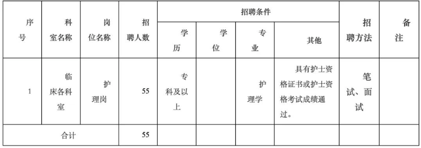 根据医院岗位需求,医院研究决定,拟向社会公开招聘55名护士,现将有关事宜公告如下:
