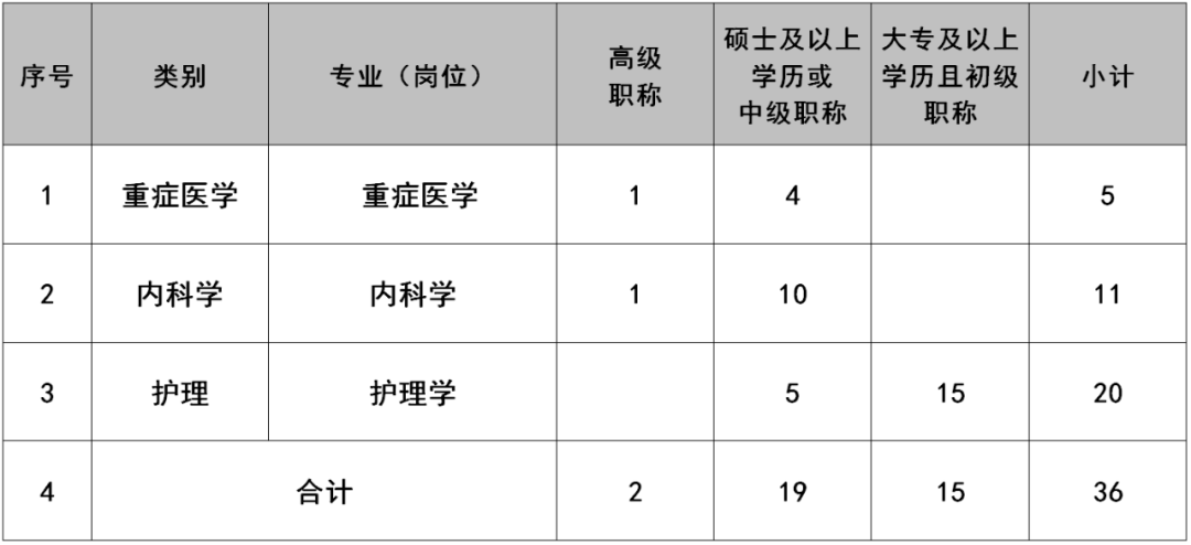 (一)医生招聘条件:1.本科要求参加全国普通高等公司招生统一考试入学的本科毕业生,具有本专业全日制统招本科学历,有学位证书;2.硕士及以上要求经国家统一硕士研究生考试入学的全日制硕士毕业生(含经教育部认证的研究生学历),第一学历为普通全日制统招5年制临床类本科,专业对口;3.高级职称或中级职称学历可放宽至本科;4.有执业医团队格证并正常注册。(二)护理招聘条件:1.全日制大专及以上学历(不含3+2),护理专业;2.三甲医院实习经历/二甲及以上工作经历;3.护理硕士不超过30周岁(1993年1月及以后出生),护理本科毕业生不超过24周岁(1999年1月及以后出生),护理大专毕业生不超过22周岁(2001年1月及以后出生);4.身高160cm以上;5.有护士资格证并注册;6.有重症医学科(ICU)工作经验优先。(三)本次招聘不针对2023年应届毕业生,面试成功后原则上需要一个月内到岗。