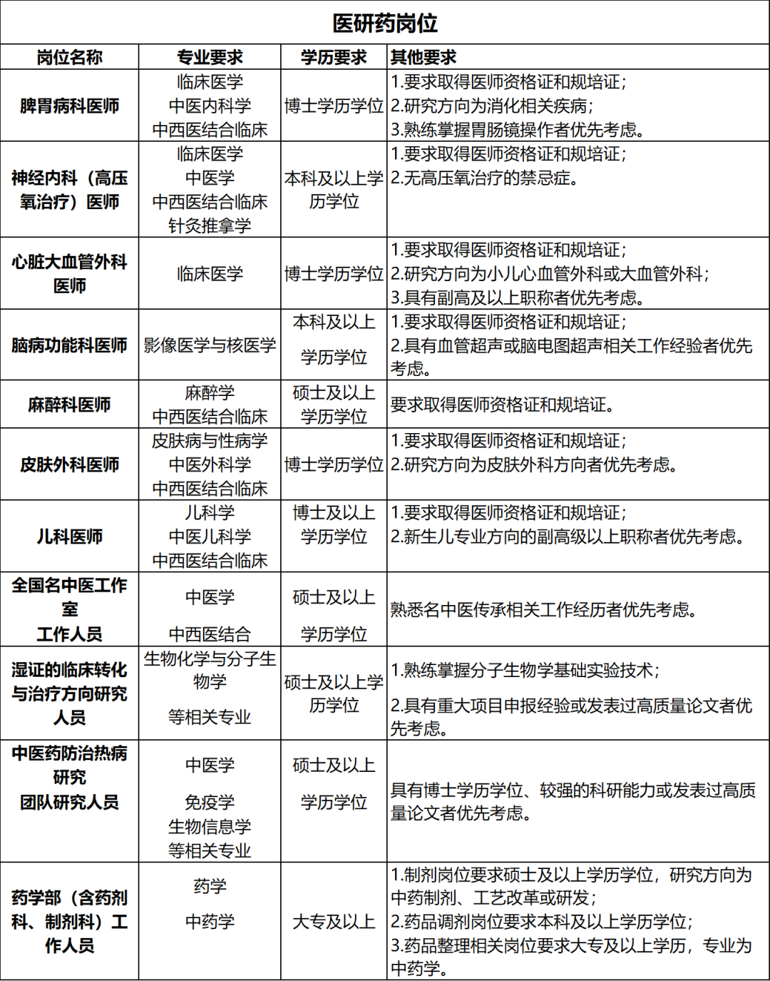 3.具有一定的科研能力、以第一作者发表高水平论文、科研业绩突出、有三甲医院相关科室工作经历、有海外留学经历者优先考虑。