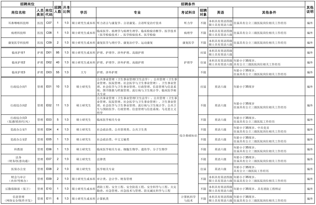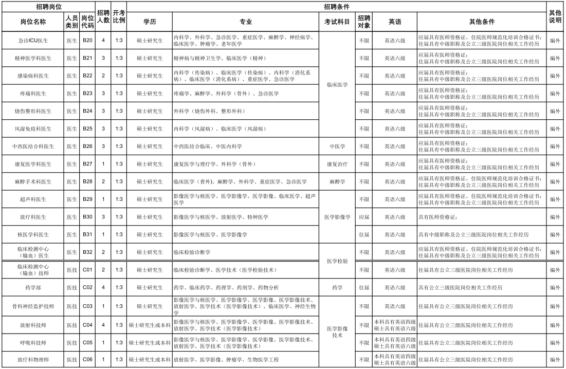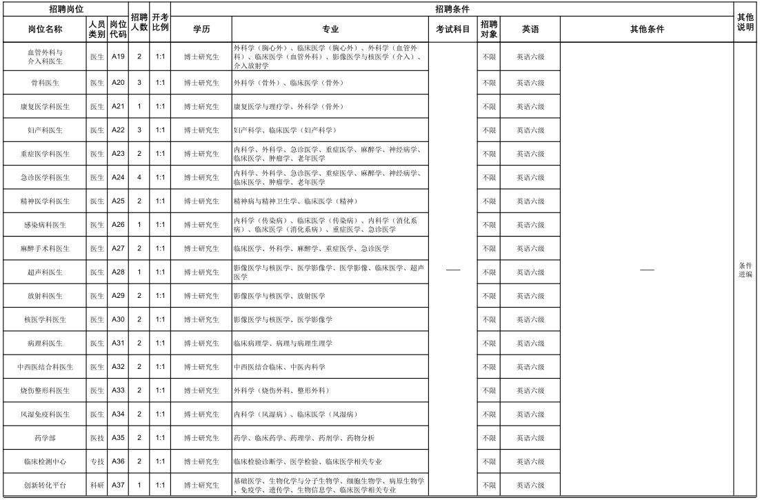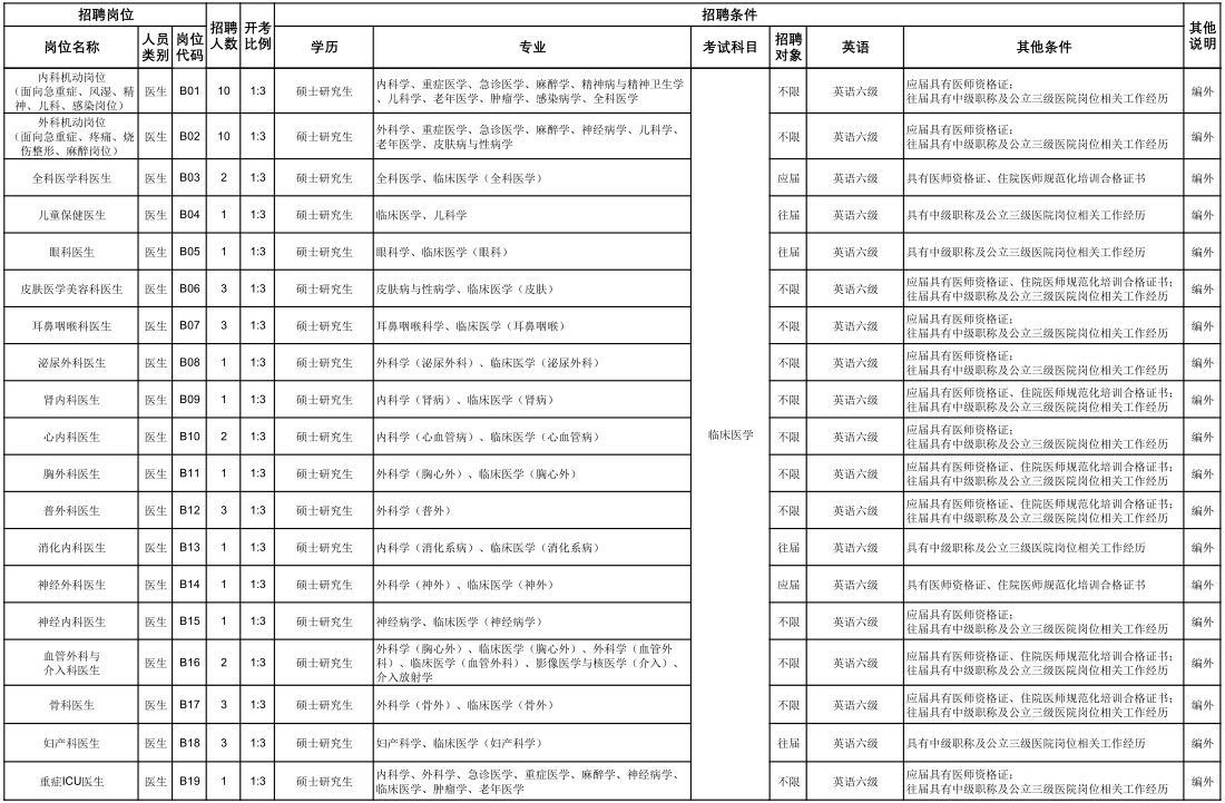 3.适应岗位要求的身体条件,能从事临床、教学、科研一线工作。