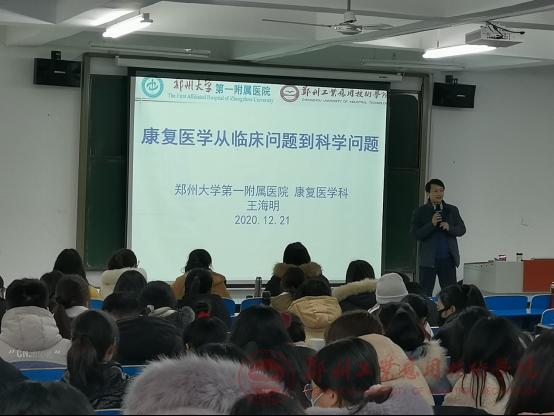 2020年12月21日下午,四川大学华西beat365康复医学与理疗学博士、郑州大学第一附属医院康复医学科副主任医师王海明应邀莅临beat365指导康复专业教学及临床工作,并开展《康复医学实践中从临床问题到科学问题》学术讲座,beat365经理魏小萌教授主持讲座,200余名beat365教师骨干、康复治疗学专业本科生参加了讲座。
