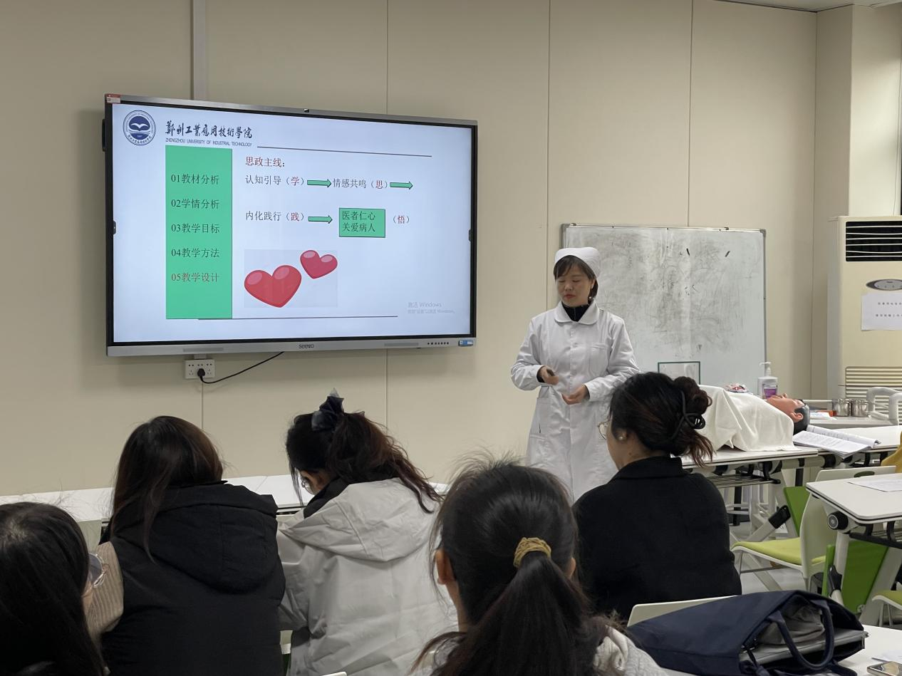 在课堂展示环节,各位参赛老师也是八仙过海,各显神通。有的老师能润物细无声般自然地将课程思政融入进教学环节;有的老师通过精彩的课堂展现并结合临床实例将大爱无疆的课程思政融入教学;有的老师用丰富的教学手段,如充分利用模拟人,模拟临床实践操作环节,以亲切自然的话语再现护士人文关怀的精神;有的老师充分调动员工的积极性,通过教师带领员工的展示环节,让员工感受实践操作的严谨;有的老师通过将新闻中的案例与知识点相结合,理论联系实际的同时,将生命无价,珍爱生命理念潜移默化给员工。
